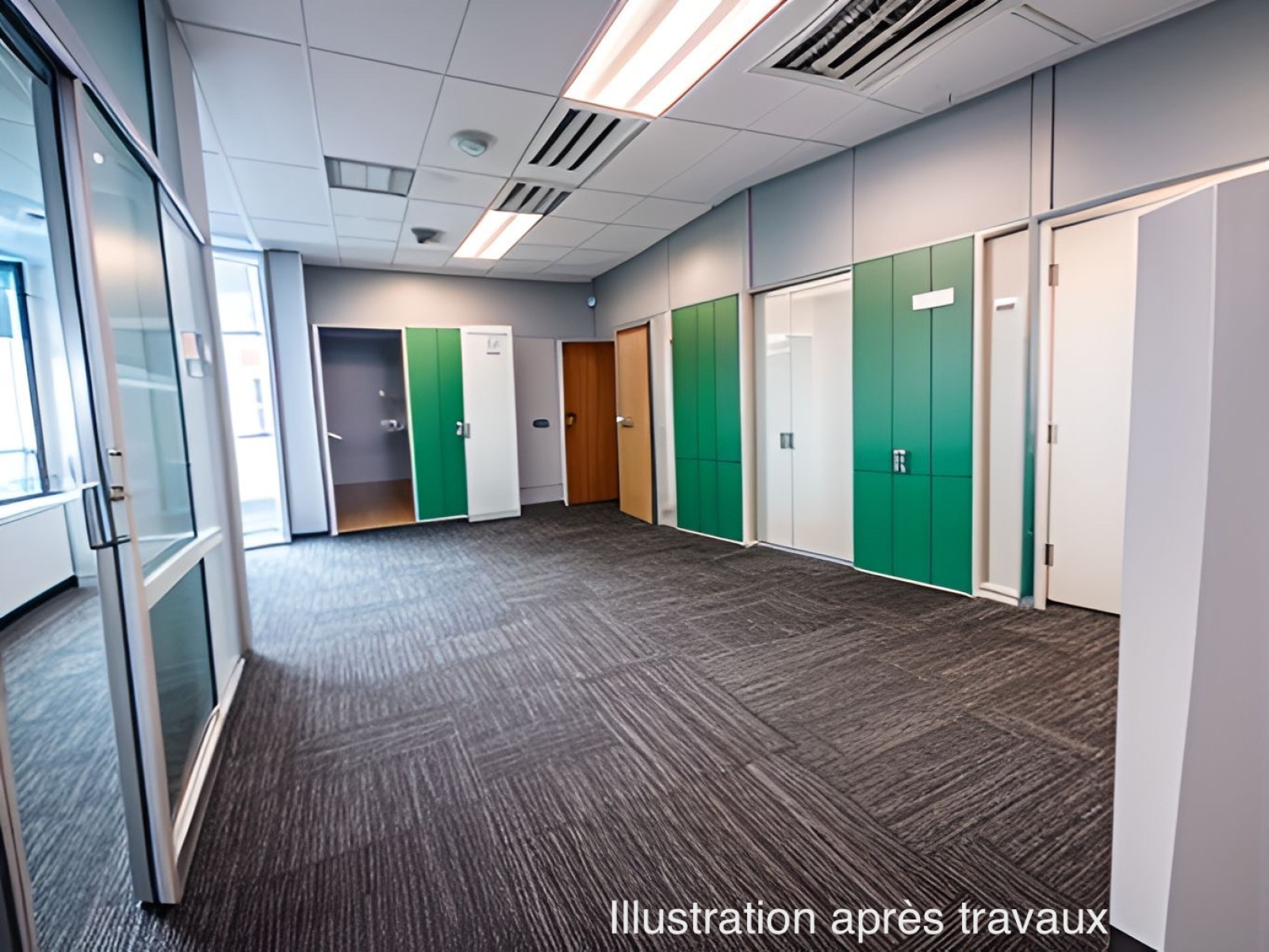 Vous y trouverez 300m2 de bureaux et d'accueil public de plain pied et 50m2 de reserve.