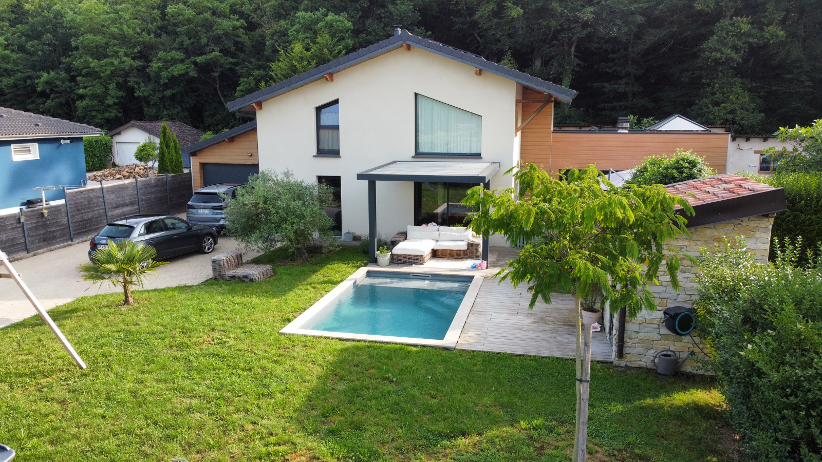 L'agence Immosalignac vous présente cette maison moderne de 2019, aux prestations haut de gamme, d’une surface de 147 m², implantée sur un terrain arboré de près de 1 000 m²avec piscine au sel, située à Montagnat, à quelques minutes de Bourg-en-Bresse.