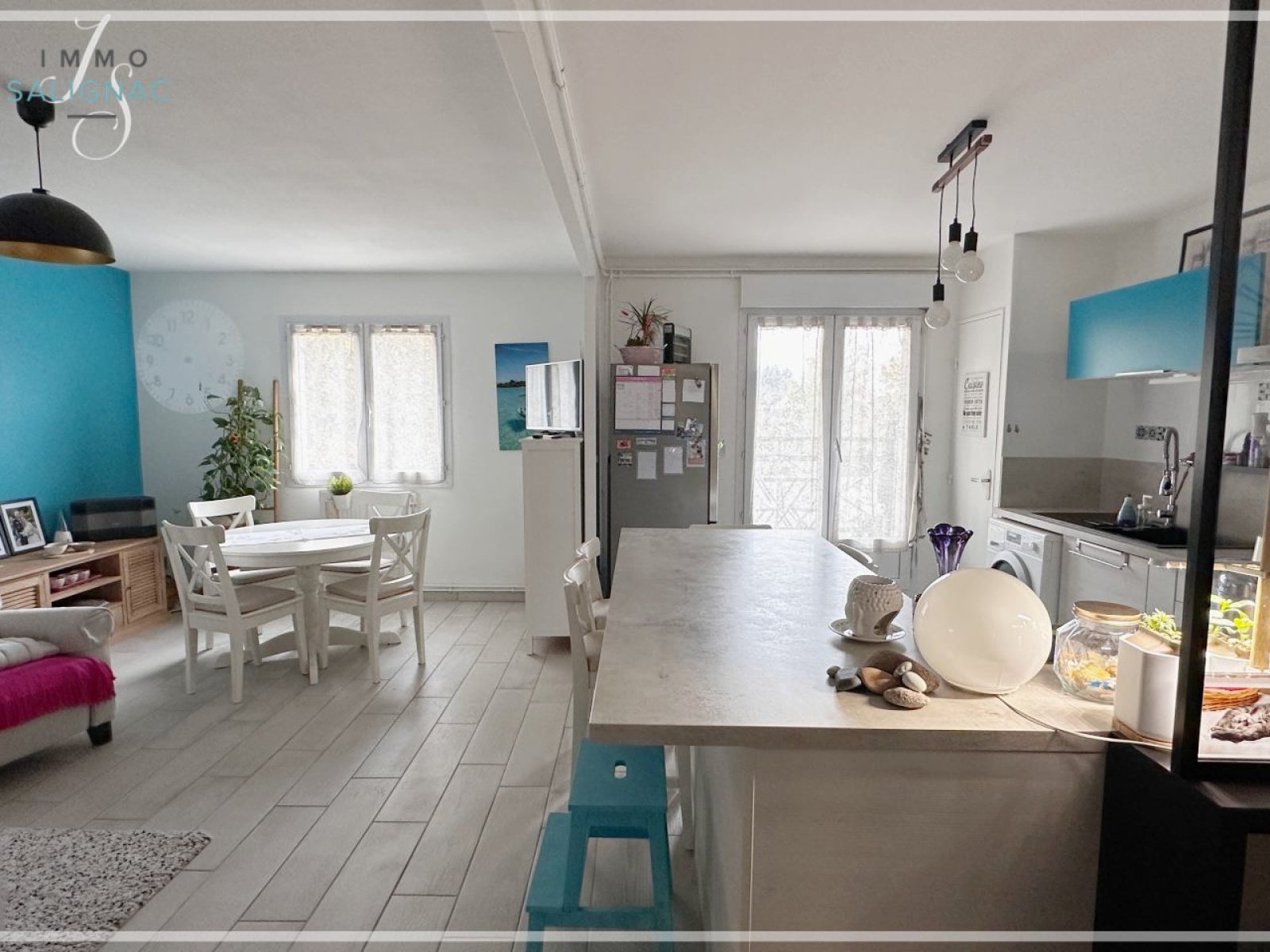 Cet appartement traversant se compose d’une entrée avec placards, d’un séjour lumineux ouvrant sur le balcon, d’une cuisine américiane équipée, de deux chambres, d’une salle d'eau avec douche italienne, et de toilettes séparées.