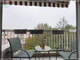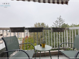 Séjour lumineux ouvert sur une terrasse exposée Ouest équipée d’un store banne, parfait pour profiter du soleil couchant.