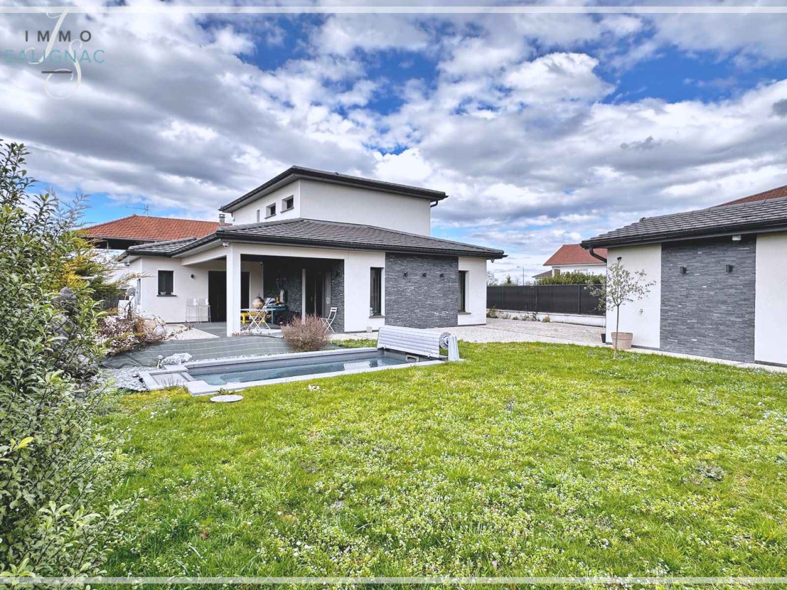 IMMOSALIGNACvous dévoile en exclusivité une magnifique maison contemporaine BBC RT 2012 située à Viriat, idéalement placée à proximité immédiate de toutes les commodités et parfaitement desservie par les bus de ville.