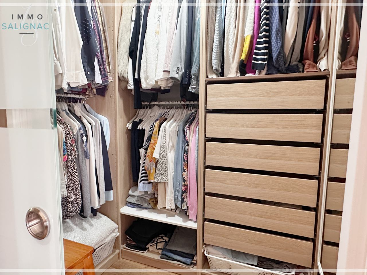 Dès l’entrée, vous profitez d’un espace de rangement fonctionnel qui s’ouvre sur une vaste pièce de vie baignée de lumière, avec de grandes baies vitrées donnant accès à la terrasse.