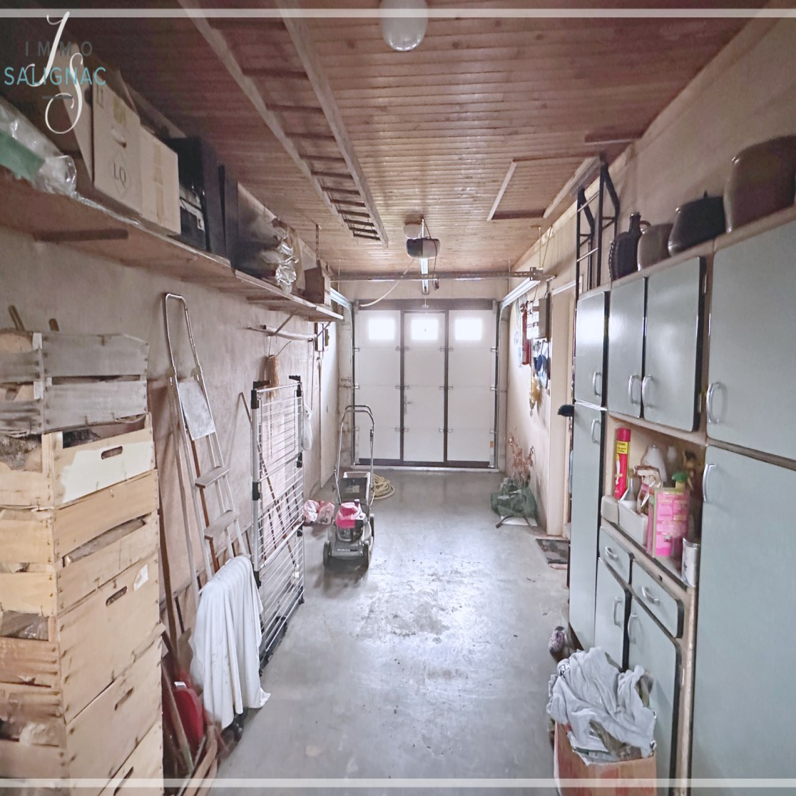 Grand garage sur toute la largeur de la maison