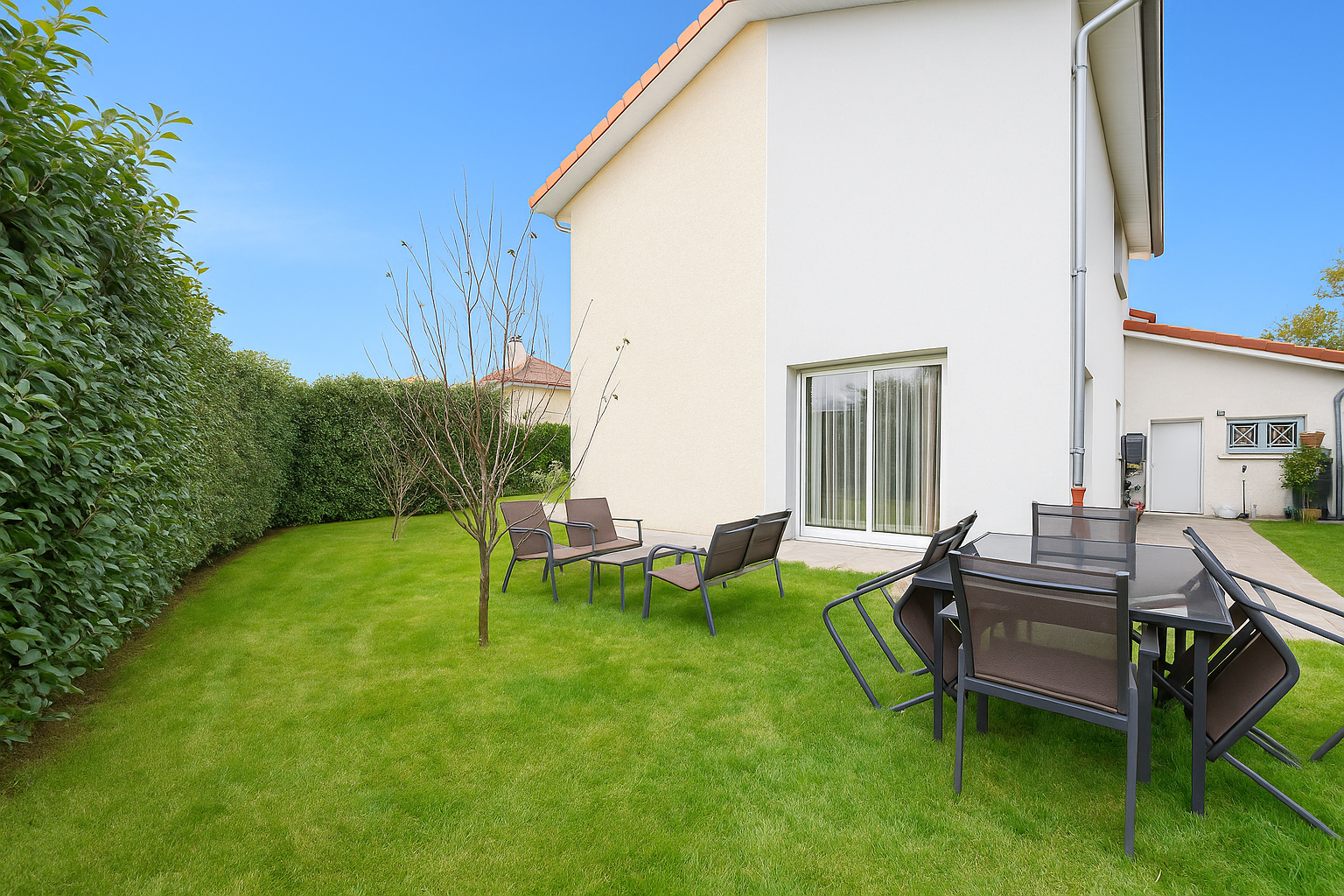 Terrain clos sans vis-à-vis, parfaitement entretenu, avec pergola pour vos repas d’été.
